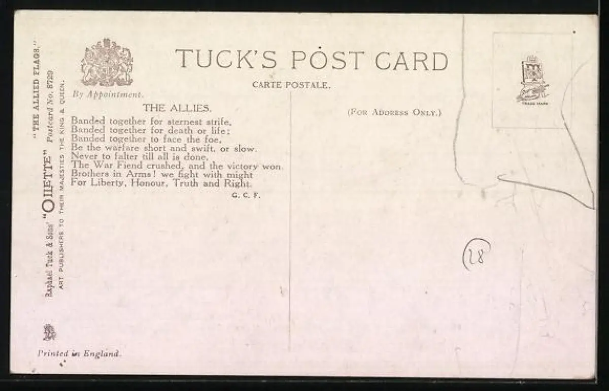AK King George V., Union Jack, Flags of France, Russia, Japan and Belgium