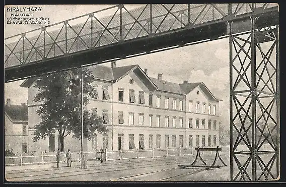 AK Kiralyhaza, Vöröskereszt epület es a vasuti atjaro hid