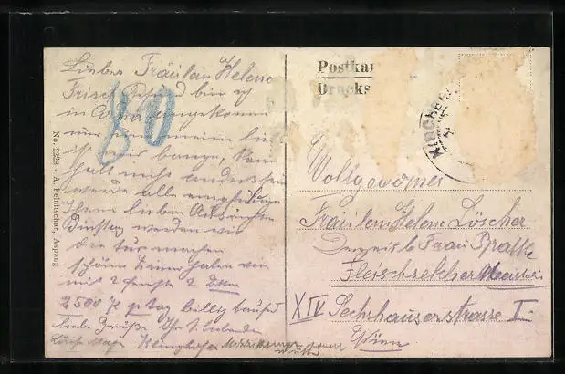 alte Ansichtskarte, gelaufen, Briefmarke entfernt, rückseitig Oberflächenschaden, guter Zustand