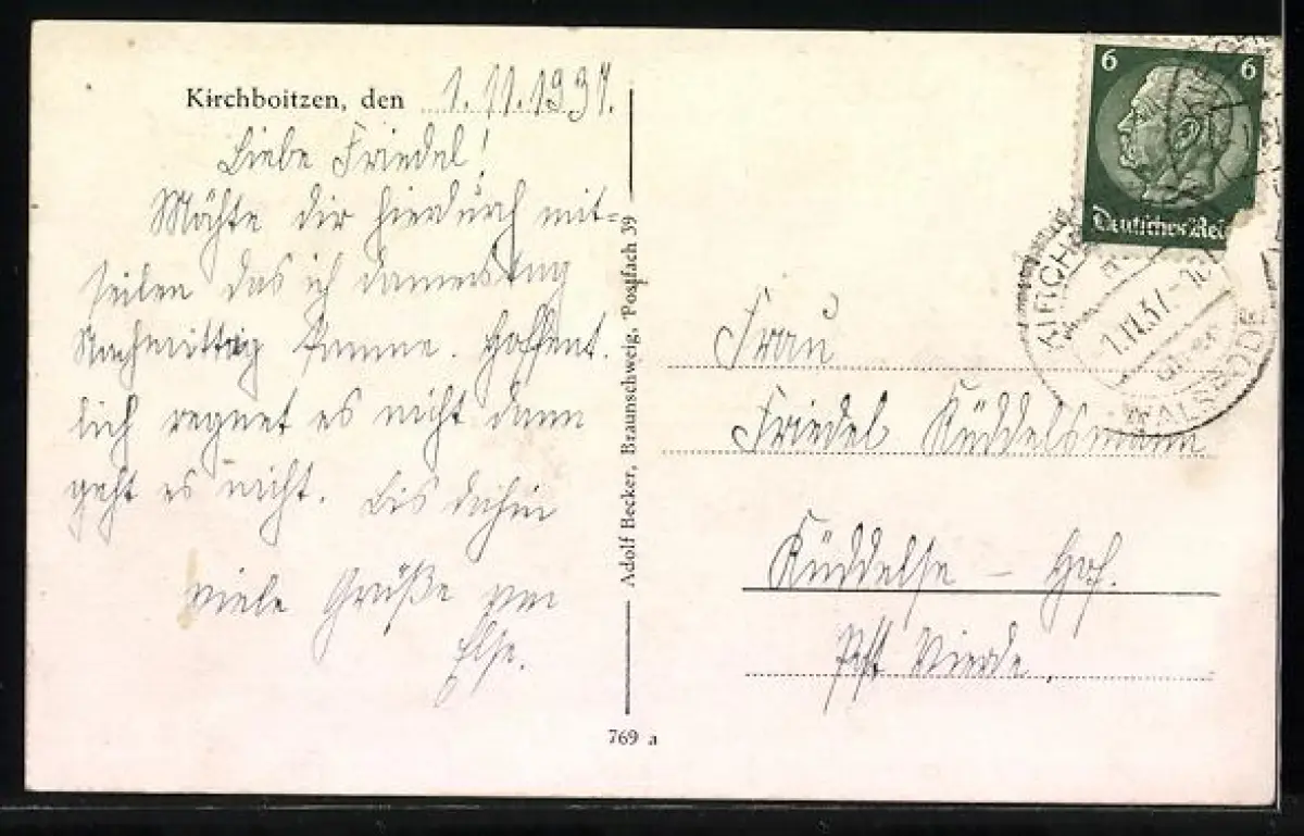 alte Ansichtskarte, gelaufen 1937, Stempelspur, guter Zustand