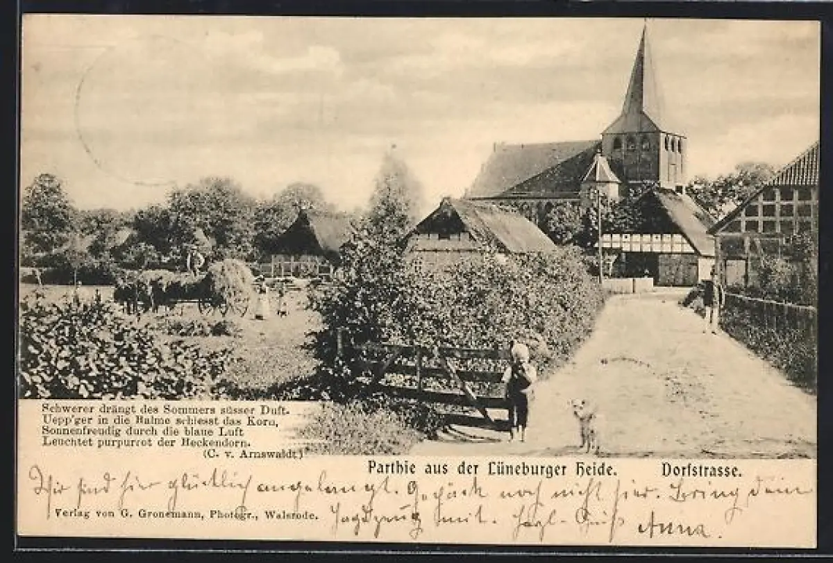 AK Kirchboitzen /Lüneburger Heide, Dorfstrasse, Kirche, Fachwerkhäuser