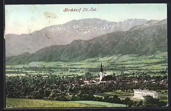 AK Kirchdorf /Ob. Öst., Ortsansicht aus der Vogelschau
