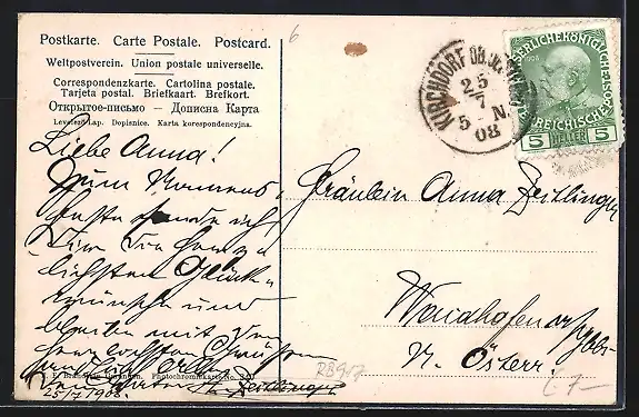 alte Ansichtskarte, gelaufen 1908, guter Zustand