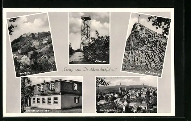 AK Kirchen /Sieg, Ortsansicht, Druidenschlösschen, Druidenstein, Ottoturm, Ort Freusburg