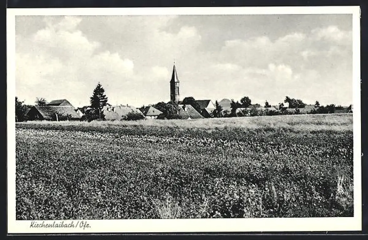AK Kirchenlaibach /Ofr., Ortsansicht mit Kirche und Feldern
