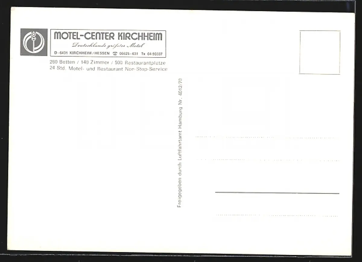 AK Kirchheim in Hessen, Blick auf das Motel-Center aus der Vogelschau