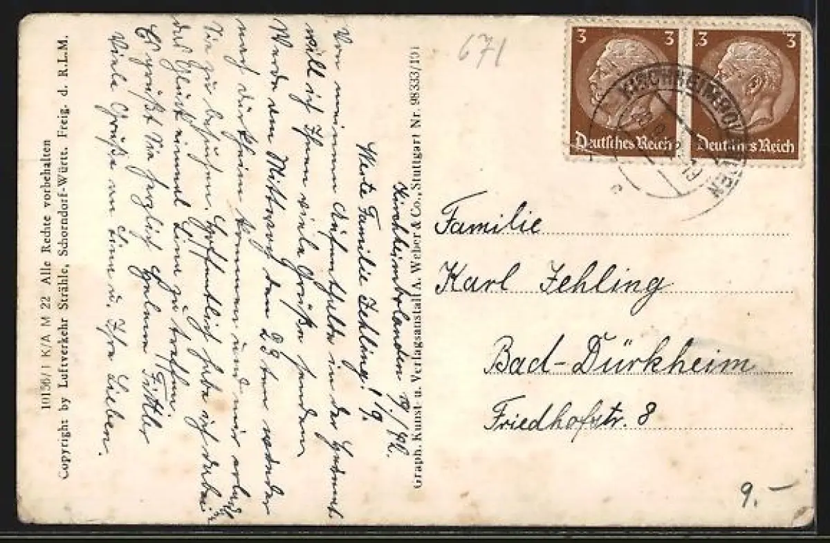 alte Ansichtskarte, gelaufen 1942, Stempelspur, Eckknicke rechts, guter Zustand