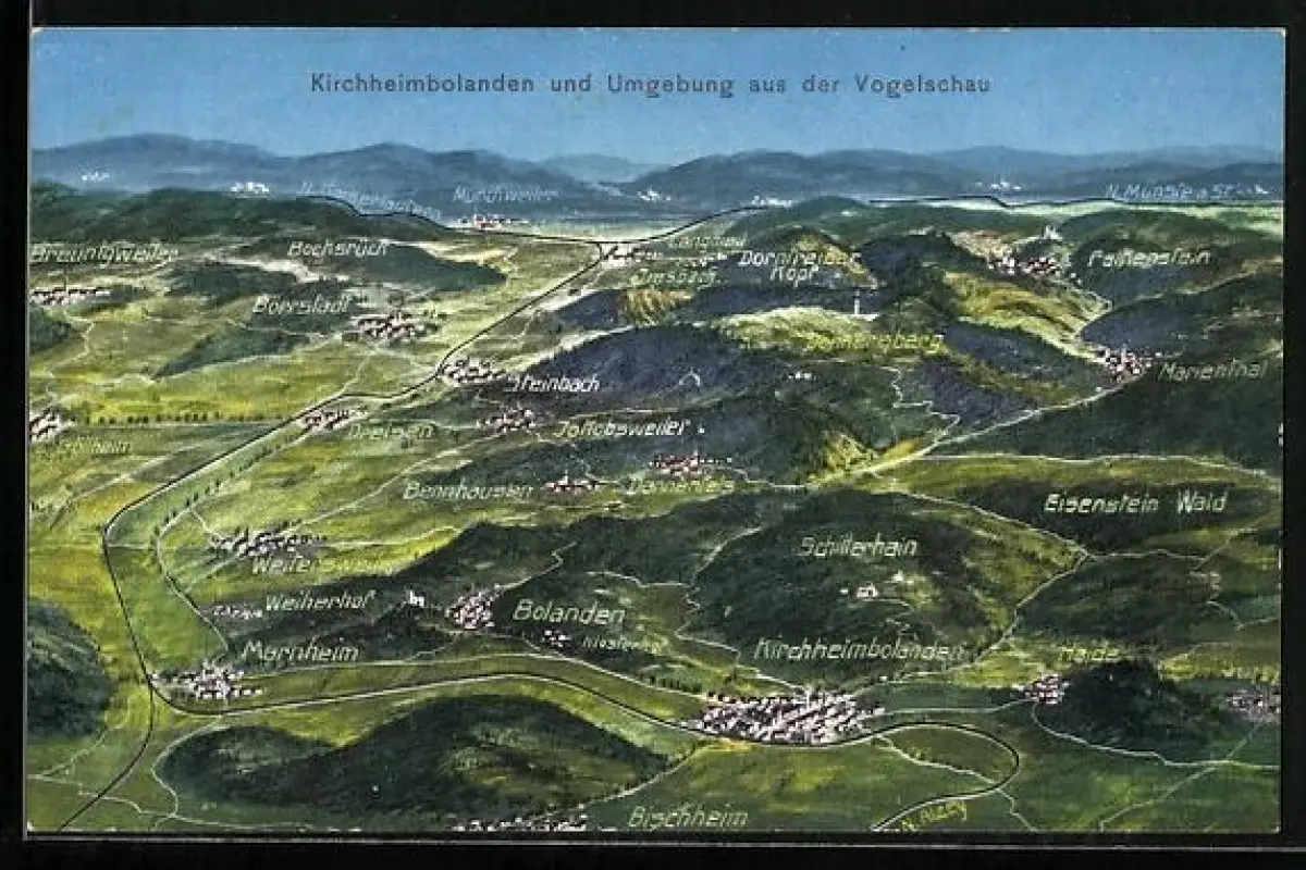 AK Kirchheimbolanden, Panorama mit Umgebung aus der Vogelschau