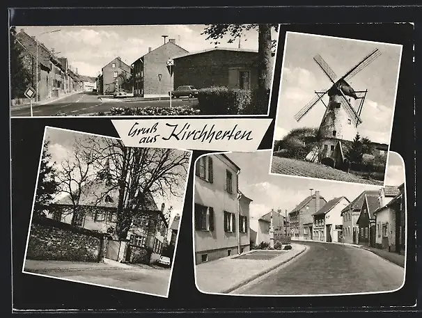 AK Kirchherten, Windmühle, Strassenansicht mit Wohnhäusern, Gebäudeansicht