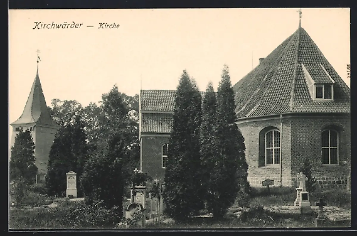 AK Kirchwerder, Kirche St. Severini mit Kirchhof