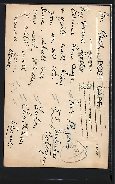 alte Ansichtskarte, gelaufen, Briefmarke entfernt, guter Zustand