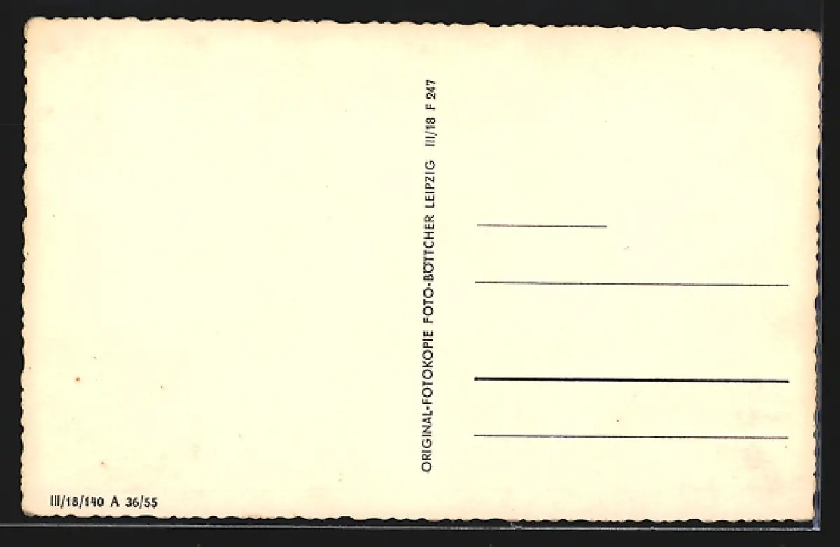 Personenbezogene Daten auf der Rückseite der Karte wurden durch blauen Textmarker unkenntlich gemacht. Die blauen Stellen sind auf die Vorderseite durchgeweicht und wirken sich negativ auf das Postkartenfoto aus