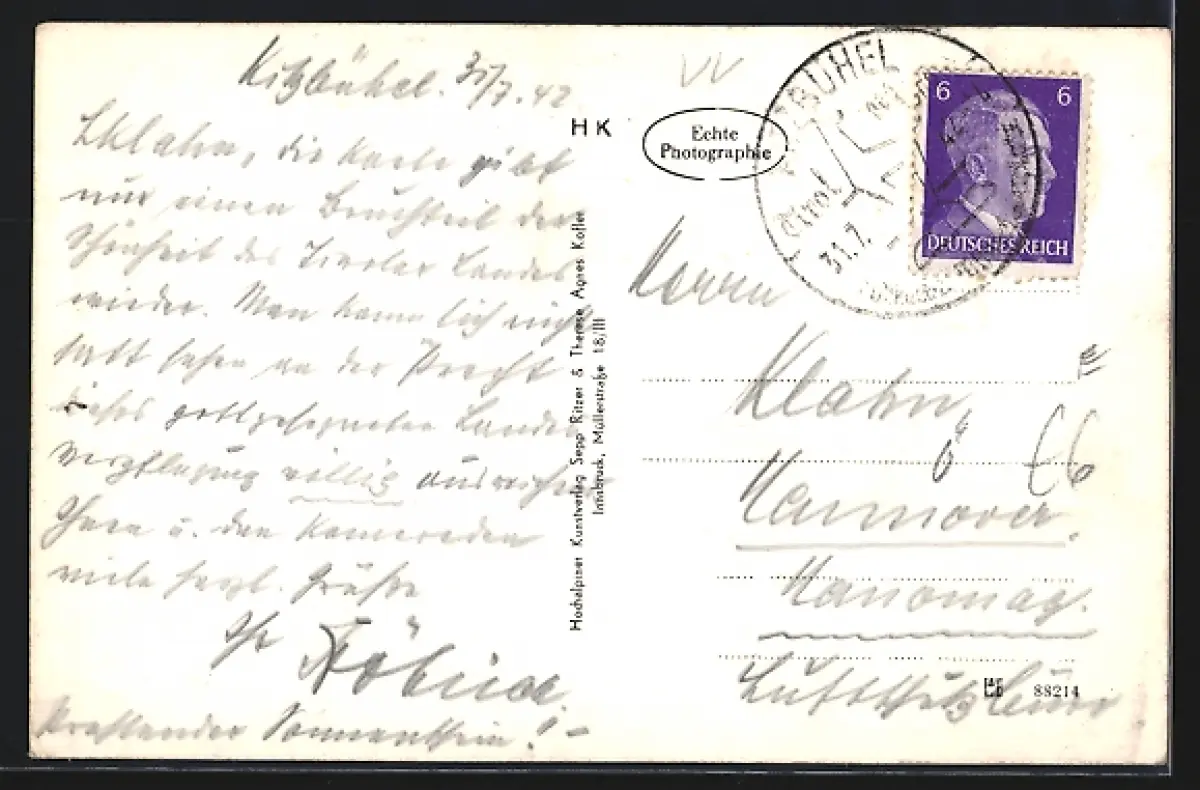 gelaufen 1942, Eckknick li. unten, guter Zustand