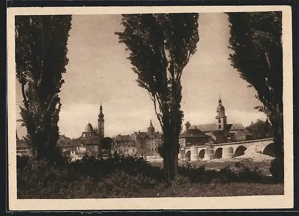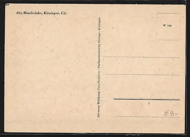 AK Kitzingen, Alte Mainbrücke vom Ufer aus