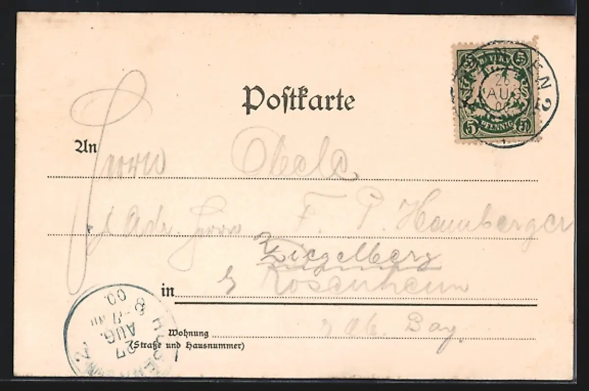 alte Ansichtskarte, gelaufen 1900, guter Zustand