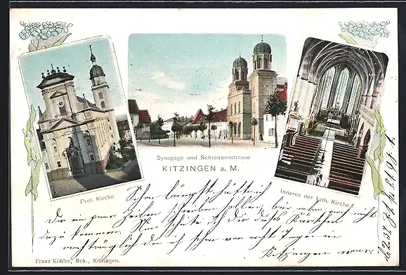 AK Kitzingen a. M., Synagoge und Schrannenstrasse, Prot. Kirche, Innenansicht der Kath. Kirche