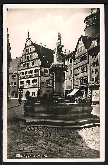 AK Kitzingen a. Main, Strassenpartie mit Kaiser`s Kaffeegeschäft und Brunnen