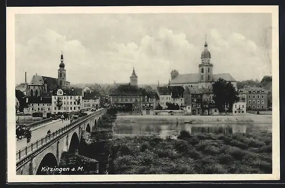 AK Kitzingen am Main, Partie neben der Brücke, Blick zur Kirche im Ort