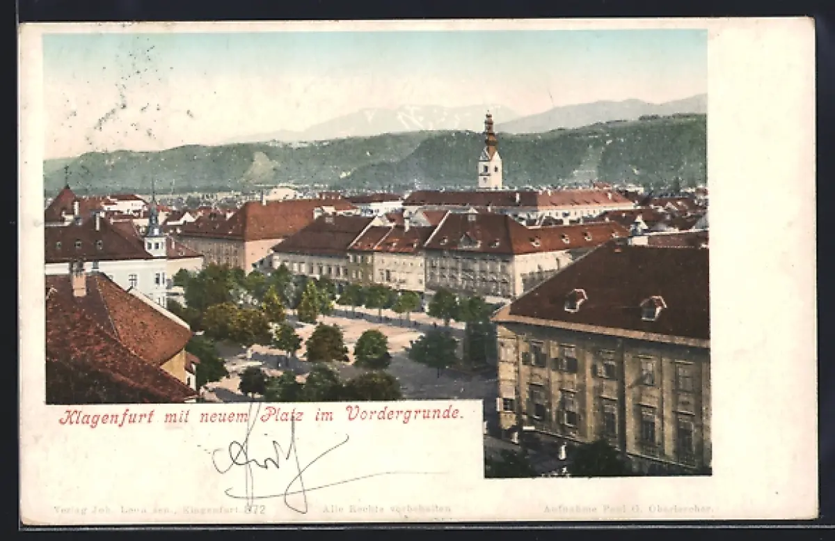 AK Klagenfurt, Teilansicht mit neuem Platz im Vordergrunde