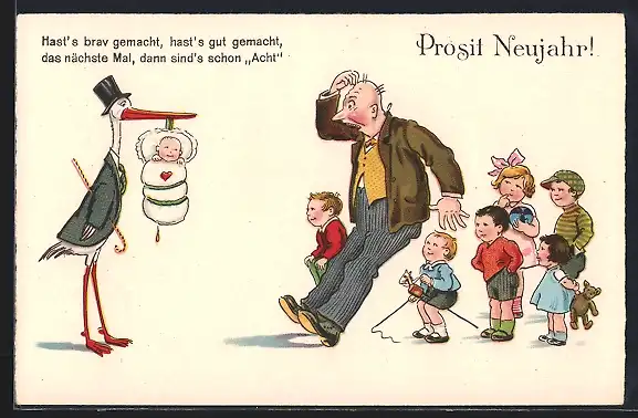 AK Klapperstorch bringt dem Familienvater ein Baby, Neujahrsgruss