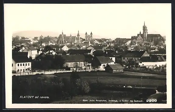 AK Klatovy, Ortsansicht aus der Vogelschau