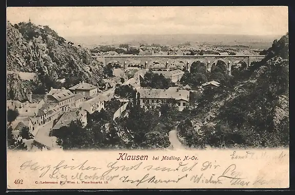 AK Klausen bei Mödling, Ortsansicht aus der Vogelschau
