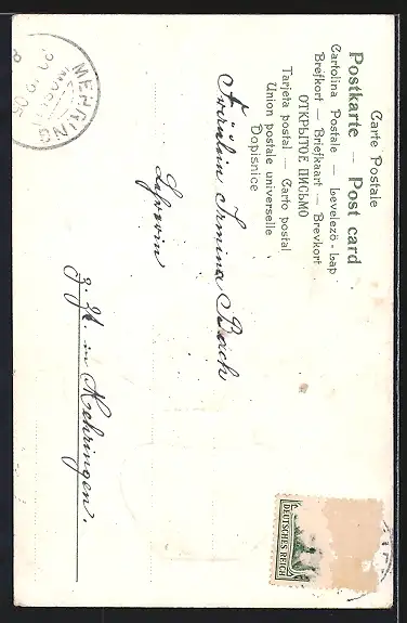 alte Ansichtskarte, gelaufen, Briefmarke entfernt, Eckknick li. unten, guter Zustand