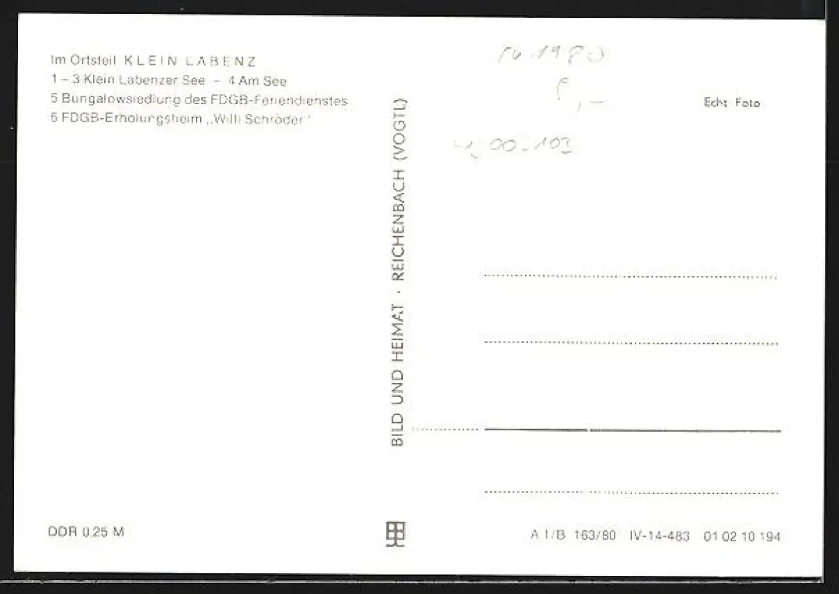 AK Klein Labenz /Sternberg, Bungalowsiedlung des FDGB und Erholungsheim Willi Schröder
