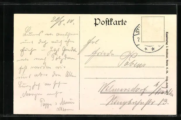 alte Ansichtskarte, gelaufen, Briefmarke entfernt, guter Zustand