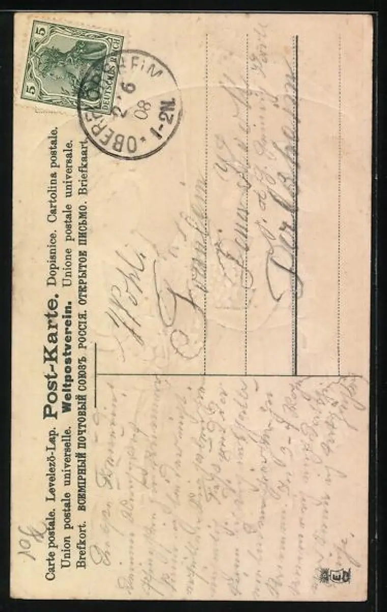 alte Ansichtskarte, gelaufen 1908, Eckknick und Abriebspur re. unten, guter Zustand