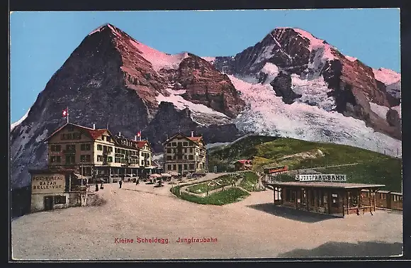 AK Kleine Scheidegg, Gesamtansicht mit Jungfraubahn