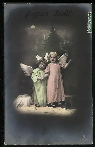 AK Kleine Weihnachtsengel in nächtlichem Wald