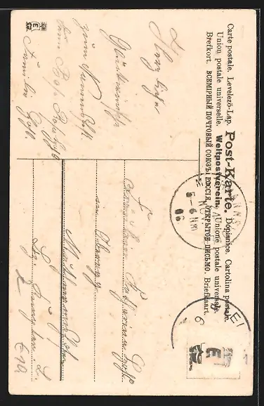 alte Ansichtskarte, gelaufen, Briefmarke entfernt, rückseitig Oberflächenschaden, guter Zustand
