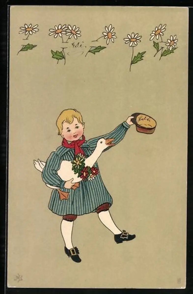 AK Kleiner Bauer mit geschmückter Gans im Arm