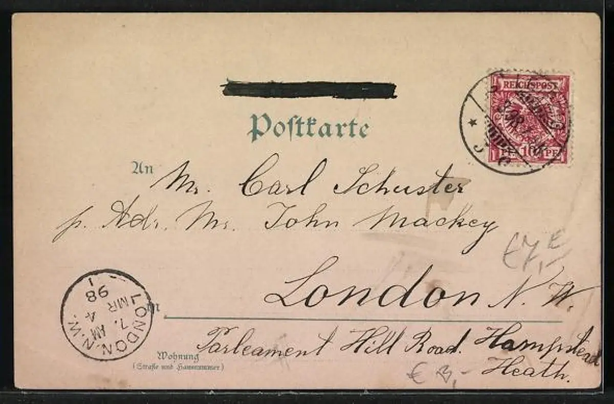 alte Ansichtskarte, gelaufen 1898, Eckknicke unten, Eckknick links oben, sonst guter Zustand