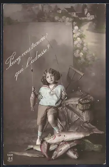 AK Kleiner Junge im Matrosenhemd beim Angeln