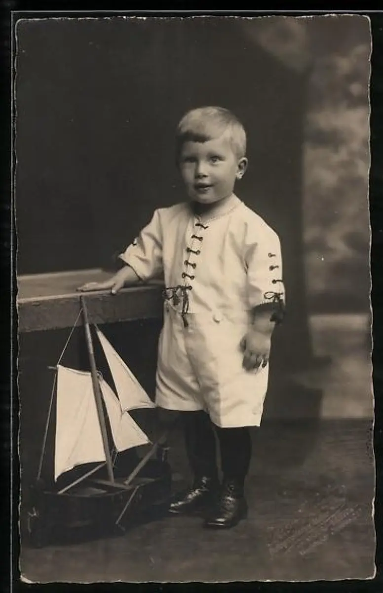 AK Kleiner Junge im weissen Anzug mit Spielzeugboot