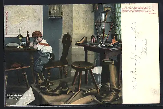 AK Kleiner Junge in der Schusterwerkstatt