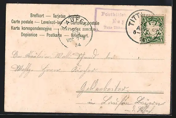 alte Ansichtskarte, gelaufen 1904, guter Zustand
