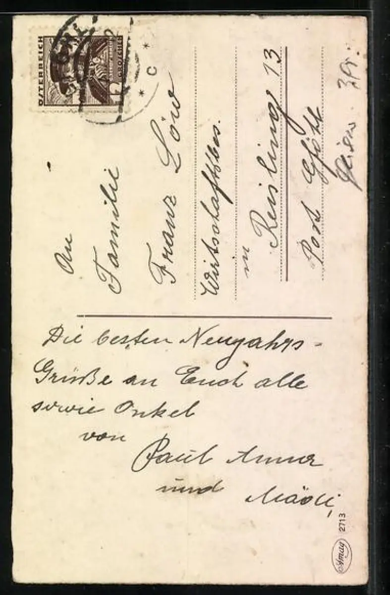 AK Kleiner Junge mit Skistöcken auf Skiern, Neujahrsgruss