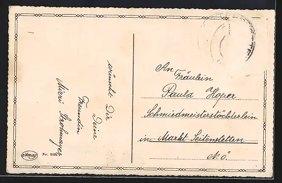 alte Ansichtskarte, gelaufen, Briefmarke entfernt, rückseitig Oberflächenschaden, guter Zustand
