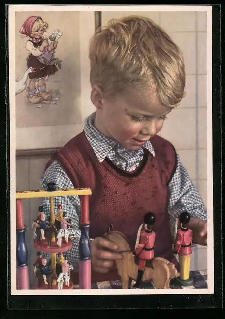 AK Kleiner Junge spielt mit Holzfiguren am Tisch