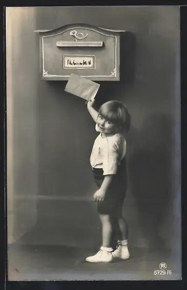 AK Kleiner Junge wirft am Postkasten einen Brief ein