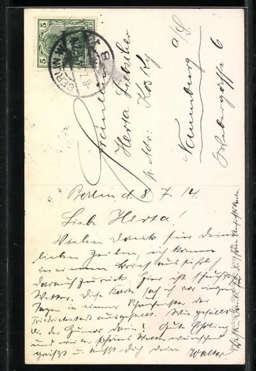 alte Ansichtskarte, gelaufen 1914, Stempelspur, guter Zustand