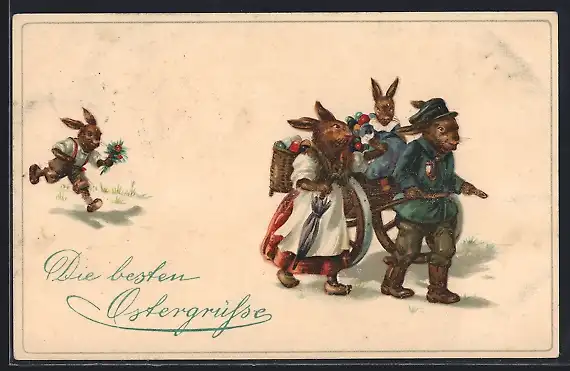 AK Kleiner Osterhase läuft seinen Eltern hinterher