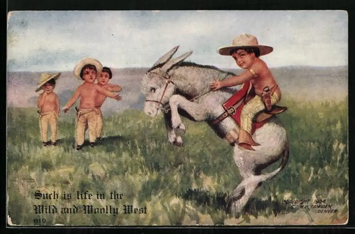 AK Kleiner Reiter auf springendem Esel