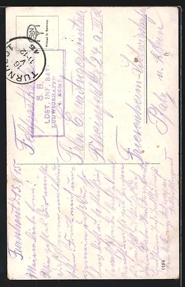 alte Ansichtskarte, gelaufen 1915, Abriebspur li. oben, guter Zustand