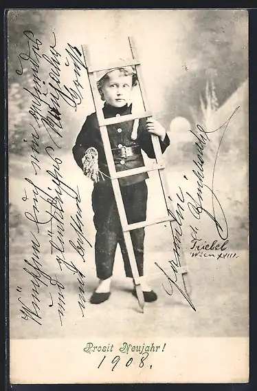 AK Kleiner Schornsteinfeger mit Leiter, Neujahrsgruss