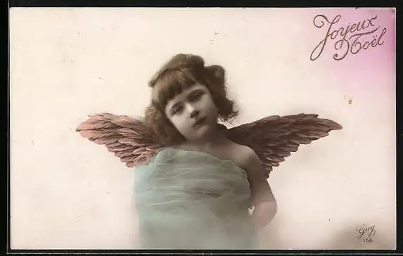 AK Kleiner Weihnachtsengel in blauem Tuch, Joyeux Noel