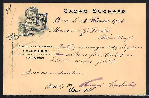 AK Kleines Kind am Tisch mit einer Tasse Cacao Suchard